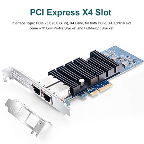 Tipo de cableado: RJ45 Categoría-6 hasta 55 m; Categoría-6A hasta 100 m, PCIe v3.0 (8.0GT / s), x 4 carriles