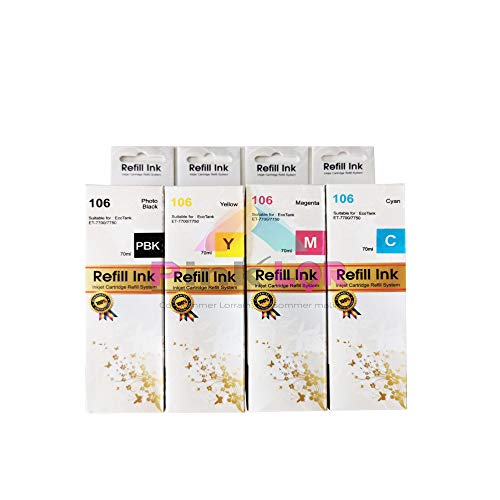 106 – Botellas de Tinta compatibles con Epson Ecotank (1 C, 1 m, 1 Y/1 B, para ET-7700 y ET-7750