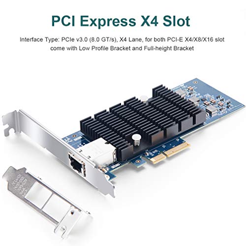 Tipo de cableado: RJ45 Categoría-6 hasta 55 m; Categoría 6A hasta 100 m, PCIe v3.0 (8.0GT / s), x 4 carriles.