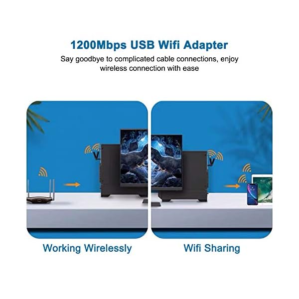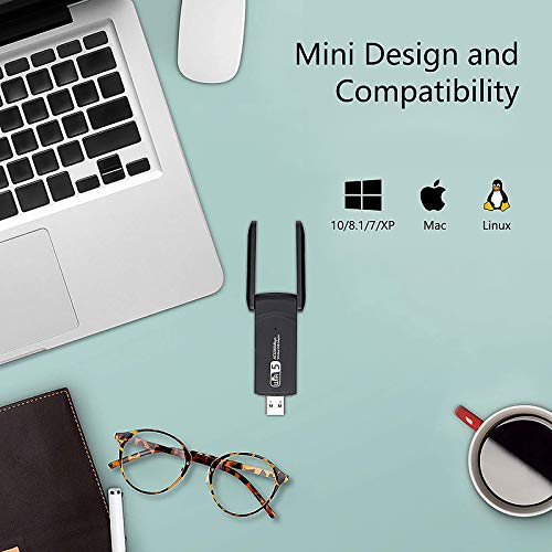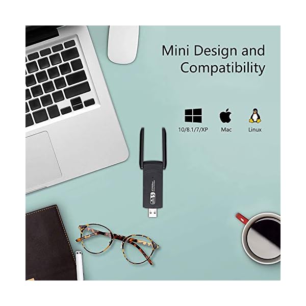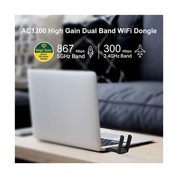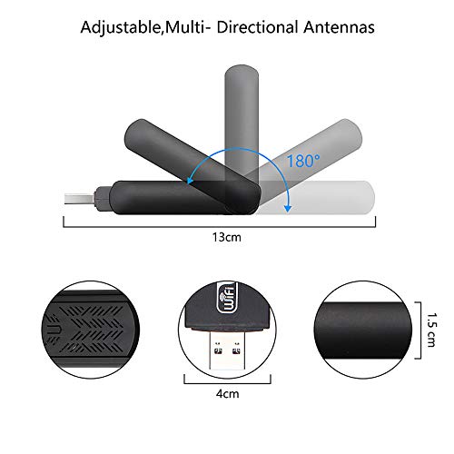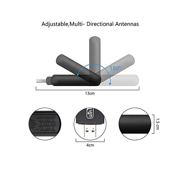 Puerto USB 3.0 – El dongle wifi USB 3.0 admite tasas de transferencia de hasta 5 Gbps. Hasta 10 veces más rápido que USB 2.0. La antena de Doble puede le ofrece una experiencia de senal WiFi estable.