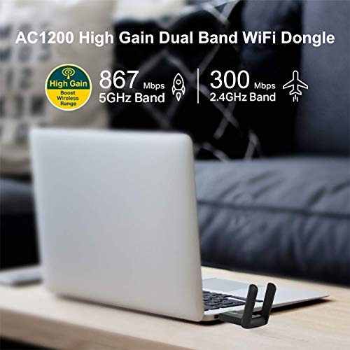 Alta velocidad Wi-Fi -Adaptador WiFi Dualband hasta velocidades de 1200Mbps con 300Mbps en 2.4GHz y 867Mbps a 5GHz, es ideal para ver videos HD de alta definición, transmisión de audio y juegos en línea.