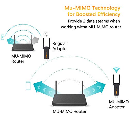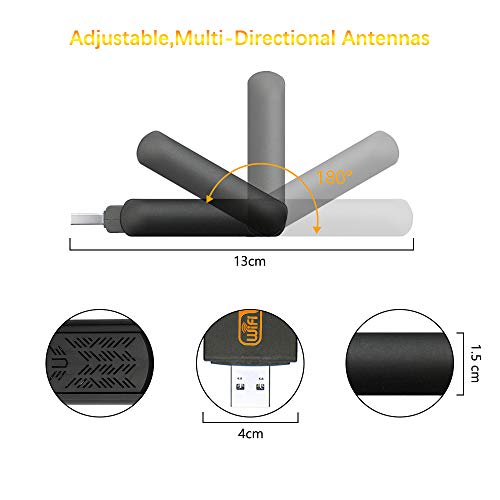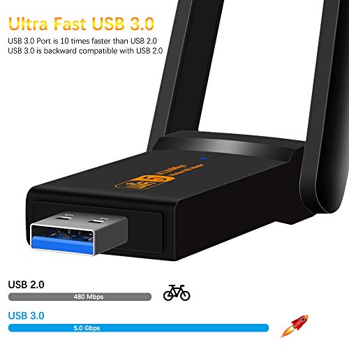 Puerto USB 3.0 – El dongle wifi USB 3.0 admite tasas de transferencia de hasta 5Gbps. Hasta 10 veces más rápido que USB 2.0. La antena de Doble puede le ofrece una experiencia de senal WiFi estable.
