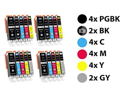 Contenido: 4x Negro-Grande (cada 24ml), 2x Negro-Photográfico (cada 13ml), 4x Cian (cada 13ml), 4x Magenta (cada 13ml), 4x Amarillo (cada 13ml), 2x Gris (cada 13ml)
