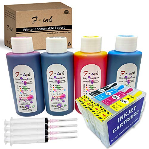 1) 29 o 29XL kits de recambio de tinta, incluyen cartuchos de tinta recargables vacíos y tinta de tinte de botella (negro T2991, cian, T2992, magenta T2993, amarillo y amarillo T2994 de tinta negra x 100 ml, tinta cian x 100 ml, tinta amarilla x 100 ml)