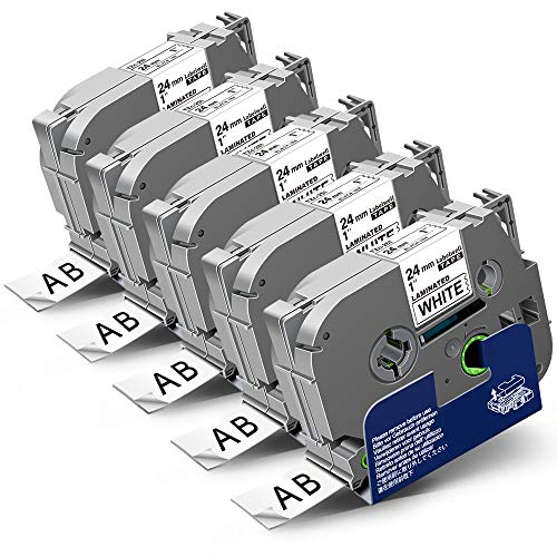 ① Paquete: (NON-OEM) Paquete de 5 Reemplazo de cinta de Autoadhesivo etiquetas compatible para Brother TZ TZe-251 TZe251 TZ251 Laminado, ② Color: Negro sobre Blanco. ③ Tamaño: 24mm / 0.9′ (Ancho) x 8 m / 26.2 ‘ (Largo)