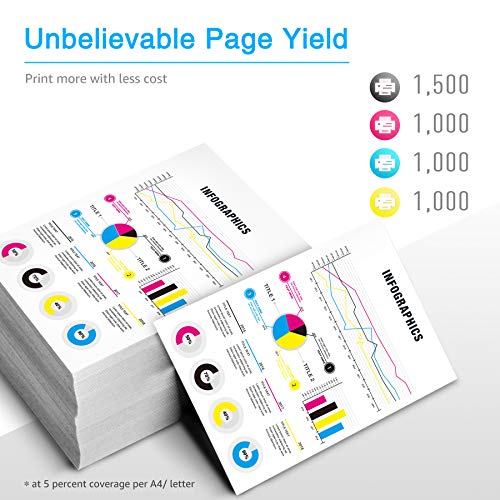 Contenido del paquete: 1 Negro, 1 Cian, 1 Amarillo, 1 Magenta (paquete de 4)