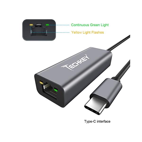 Adaptador USB C a Ethernet de alta velocidad de hasta 5 Gbps, este adaptador USB C a Ethernet admite su conexión de red con Ethernet de 1000 Mbps y Ethernet de 10/100 Mbps.