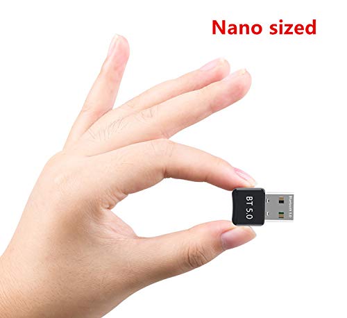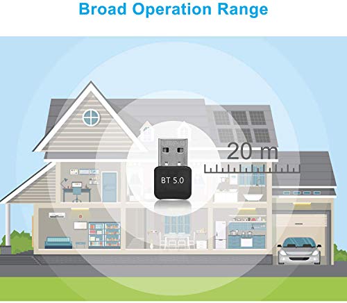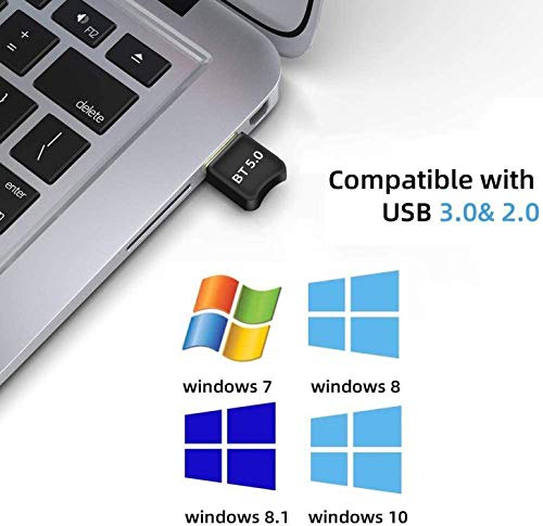 Adaptador Bluetooth 5.0 VS 4.0:1.Mejore la capacidad antiinterferente y la estabilidad y reduzca la pérdida de eficiencia de transmisión causada por la interferencia de la banda de frecuencia de 2.4 GHz.2. Disminuya el problema de la inestabilidad de la conexión del dispositivo, la desconexión frecuente y la interrupción de la señal.3. La distancia de transmisión puede alcanzar los 32 pies o incluso los 65,5 pies.Conexión rápida:Tecnología líder Tecnología Bluetooth 5.0, que puede vincular rápidamente el dispositivo mientras se inicia la computadora.Disfrute de la música en casa en cualquier lugar:La computadora se puede conectar a un auricular Bluetooth, lo que le permite dejar de lado la sujeción con cable de los auriculares y escuchar canciones infinitamente más libremente.¿Qué obtendrás?Dongle Bluetooth 5.0 * 1CD de buzo * 1