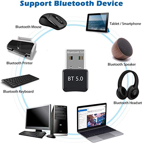 【Múltiples usos】Amplio Soporte para Dispositivos: Bluetooth 5.0 USB Dongle adaptador agrega funcionalidad Bluetooth a su computadora y puede ser compatible con versiones anteriores de Bluetooth 4.0 / 3.0 / 2.1/ 2.0, adecuado para auriculares, parlantes, receptores, teclados, ratones, teléfonos inteligentes, tabletas, impresoras, proyectores, juegos Bluetooth controladores. Si tiene alguna pregunta sobre el producto, comuníquese con nosotros, ¡resolveremos el problema dentro de las 24 horas!