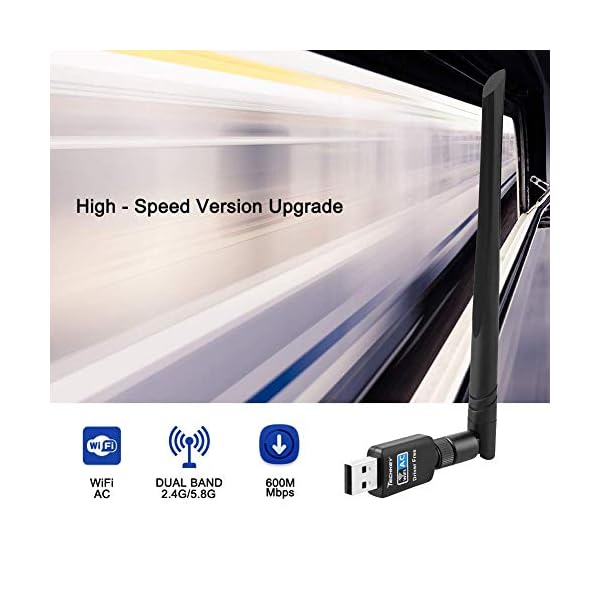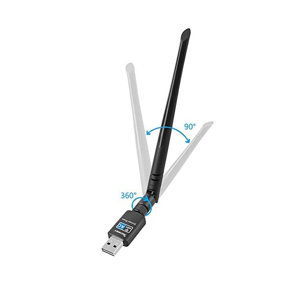 Alta Velocidad de Red: Con la antena giratoria de 5dBi, puede recibir señal desde cualquier ángulo. Este dongle de Internet puede dar a sus dispositivos acceso al último enrutador WiFi de doble banda para mayor velocidad y rango extendido, que puede ser de hasta 600Mbps de velocidad WiFi en bandas de 5.8GHz (450Mbps) o 2.42GHz (150Mbps).