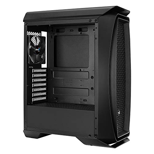 Aerocool Aero One, caja gaming ATX con rejilla delantera para una buena visualización de tus ventiladores LED frontales y equ iPad a con panel lateral de cristal templado. Soporta refrigeración líquida frontal superior y trasera para conseguir la máxima eficiencia en refrigeración y ventilador 120mm x 2, negro.