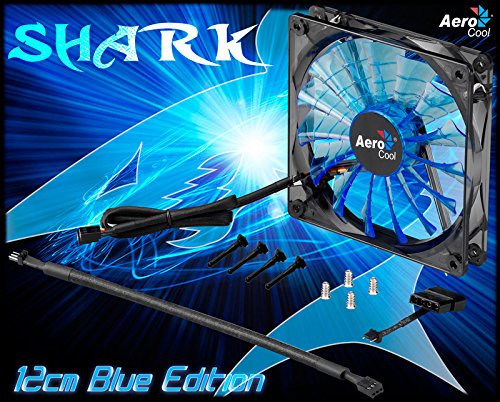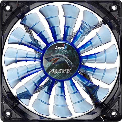 Aerocool SHARK – Ventilador gaming para PC (12 cm, 12V/7V, 15 aspas, 14.5 dBA, 1500rpm, iluminación LED azul…