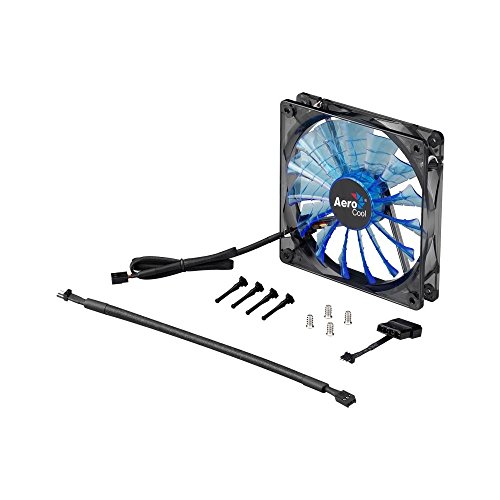 Aerocool SHARK – Ventilador gaming para PC (14 cm, 12V/7V, 15 aspas, 14.5 dBA, 1500rpm, iluminación LED azul…