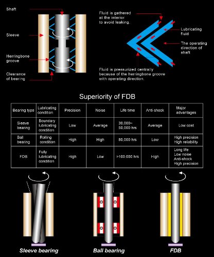 – Innovadores rodamientos dinámicos con fluido que proporcionan una vida más larga, una mayor rotación de la precisión y la función anti-shock.