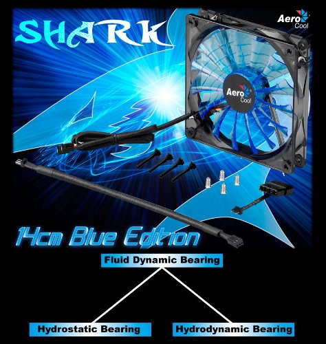 Los famosos ventiladores Aerocool Shark amplían su tamaño hasta 14cm para cubriri todas las necesidades de los usuarios modders y gamers. Con 15 aspas Shark, su rodamiento de útilma generación FDB y su sistema de funcionamiento dual potencia/silencio aportan las mejores prestaciones en ventiladores mientras que su espectacular estética con iluminación LED adornarán cualquier ordenador donde se instalen. Modelo azul con LEDS.