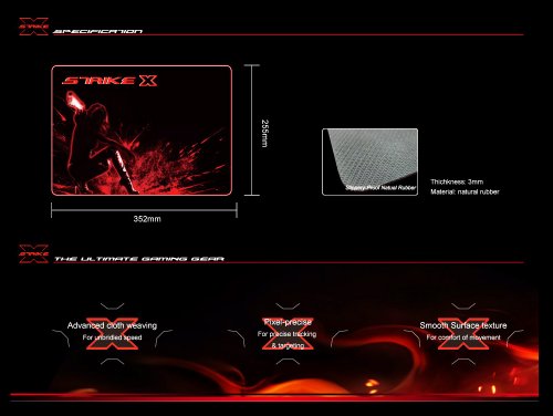 Aerocool Strike X Fury – Alfombrilla de ratón (Negro, Rojo, Imagen, Caucho, 35,2 cm, 25,5 cm, 3 mm)