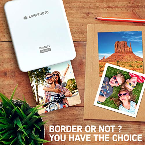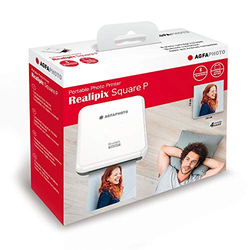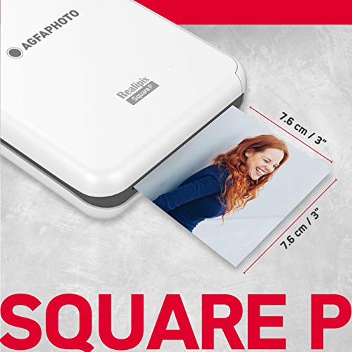 AGFA Photo Realipix Square P – Impresora fotográfica cuadrada (7, 6 x 7, 6 cm (3 x 3 pulgadas) a través de Bluetooth, sublimación térmica de 4 pass, color blanco