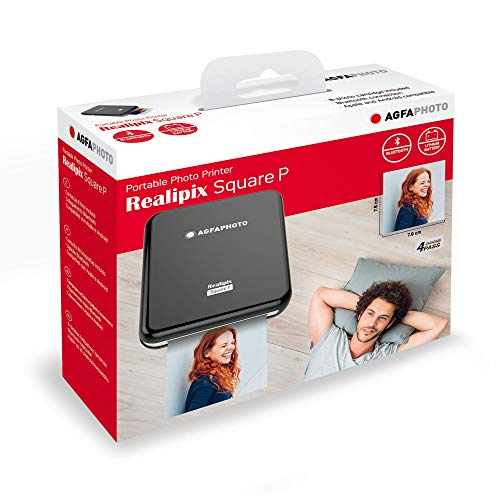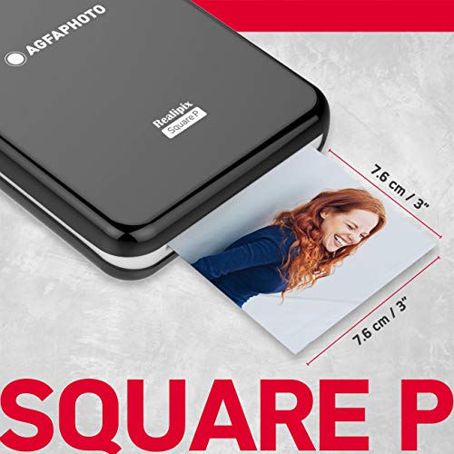 AGFA Photo Realipix Square P – Impresora fotográfica cuadrada (7, 6 x 7, 6 cm (3 x 3 pulgadas) a través de Bluetooth, sublimación térmica de 4 pass, color negro