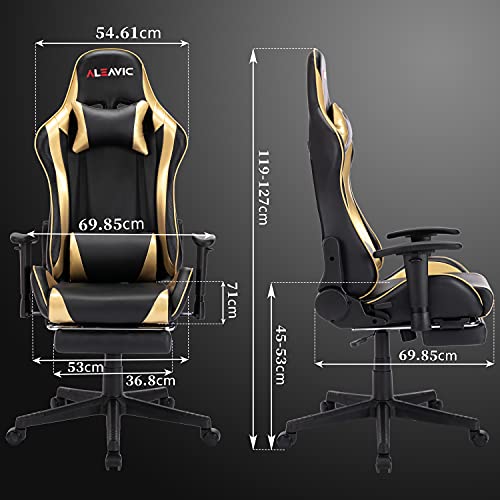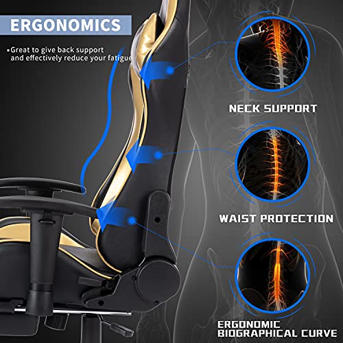 ❀Silla gamer ergonómica: estamos comprometidos a proteger la columna vertebral de nuestros clientes. El reposacabezas y las almohadas lumbares de esta silla para juegos pueden hacer que se siente erguido y envuelva su espalda perfectamente. Alivie el dolor causado por permanecer sentado durante mucho tiempo.