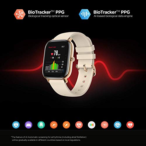 Baterías fuertes y optimizadas: 14 días de duración de la batería para evitar la carga frecuente y concentrarse en sus actividades diarias sin preocupaciones. El innovador sensor BioTracker PPG desarrollado por Huami Technology, que reduce el consumo de energía y proporciona una mayor precisión.