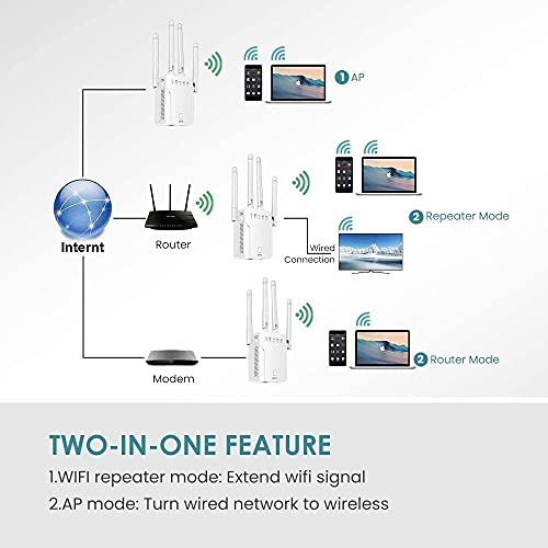 💪 【Disipación de calor de tres lados】 Nuestro amplificador Wifi adopta un diseño de disipación de calor de tres lados, que mejora en gran medida el efecto de disipación de calor del dispositivo cuando está funcionando y asegura de manera efectiva la estabilidad y vida útil de la máquina durante mucho tiempo. Además, los usuarios pueden configurar diferentes modos libremente según sus necesidades y disfrutar de los servicios de red.