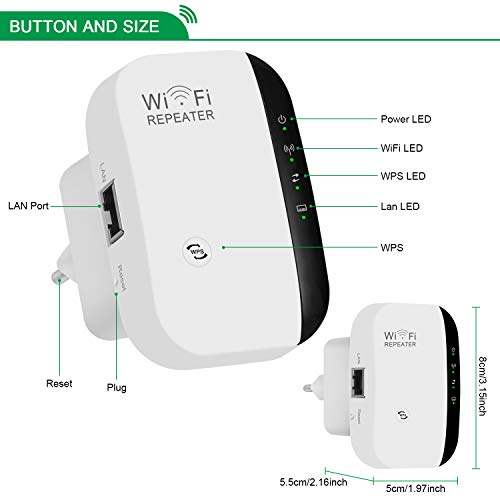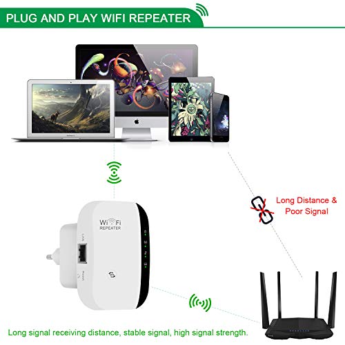 El puerto Ethernet permite que el extensor funcione como un adaptador inalámbrico para conectar dispositivos con cable, compatible con dispositivos 802.11n / g / b, funciona con cualquier red inalámbrica, enrutador y dispositivos habilitados para Wi-Fi, incluidos iPhone, iPad, teléfonos, Samsung, tableta, PC, computadora.