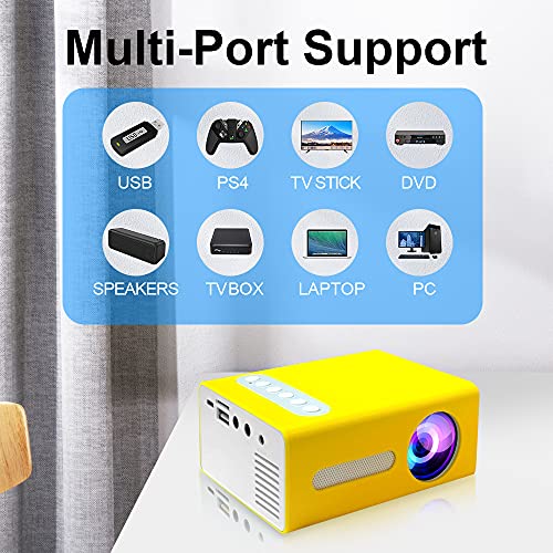 【Múltiples puertos】: el proyector soporta HDMI/USB/AV/tarjeta Micro SD/salida de audio de 3,5 mm y es compatible con Fire Stick, PS4, unidad flash USB, smartphone, tablet y ordenador portátil, satisface tus múltiples necesidades.
