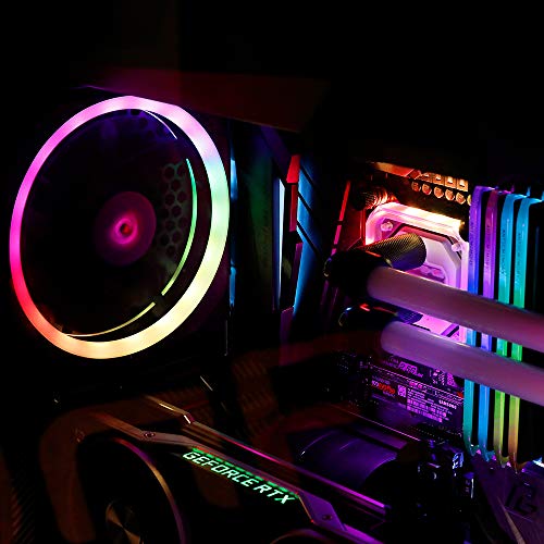El anillo RGB direccionable doble de diseño convexo ofrecía el mejor efecto de iluminación: el diseño convexo mantenía el efecto de iluminación RGB en un punto óptimo y tolerancia izquierda para otros componentes RGB como, por ejemplo, mobo / ram / gpu, componentes de refrigeración por agua y placa SSD;
