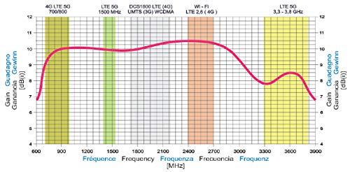 700 mhz, 800 MHz, 900 MHz, 1800 MHz, 2100 Mhz, 2400 MHz, 2600 MHz, 3500Mhz. Uso exterior o interior, en postes u otro soporte