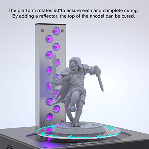 La plataforma gira 360 ° para asegurar un curado uniforme y completo. Al agregar un reflector, la parte superior del modelo se puede curar
