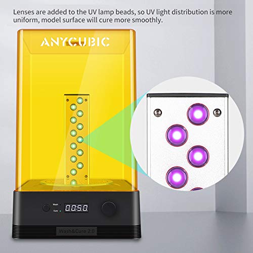Actualización de perlas de lámpara UV, máquina de curado y lavado ANYCUBIC incorporada con luz UV de 405 nm para producir una intensidad de luz uniforme y hacer que el curado sea más completo.