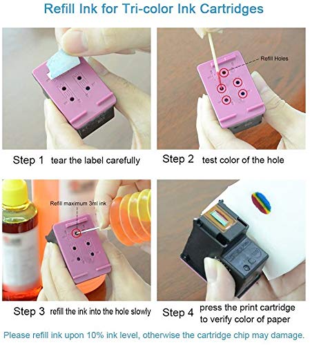 Nota para asegurarse de que se rellena correctamente en el cartucho negro, por favor, utilice las púas de herramientas para comprobar el color que coincide con los agujeros antes de rellenarlo.