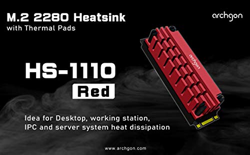 archgon HS-1110 Disipador para el refrigerador M.2 SSD 2280 PCIe NVMe/SATA, 20 mm de Altura, Aluminio, Almohadilla…