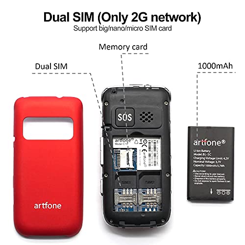 👲【Sin contrato & Batería de gran capacidad】 Este teléfono móvil para personas de la tercera edad no tiene contrato,es compatible con GSM 850/900/1800/1900 MHz,compatible con cualquier proveedor de red móvil que admita redes 2G (excepto redes 3G y 4G) ,Se suministra con una batería de litio recargable actualizada con una capacidad de batería de 1000 mAh, admite tiempo de conversación de hasta 4-5 horas,tiempo de espera de hasta 200 horas,carga más rápido y con mayor seguridad.