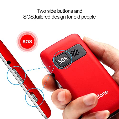👵 【SOS Botón de emergencia & Linterna】 Hay un gran botón de emergencia negro en la parte posterior.Puede configurar 5 números de llamada SOS.En caso de emergencia, presione el botón SOS durante 3 segundos para marcar números de emergencia y enviar mensajes de texto para obtener ayuda inmediata de su familia o amigos.Botón de linterna en el lado izquierdo, simplemente deslícelo hacia arriba para que pueda ver mejor en la oscuridad.