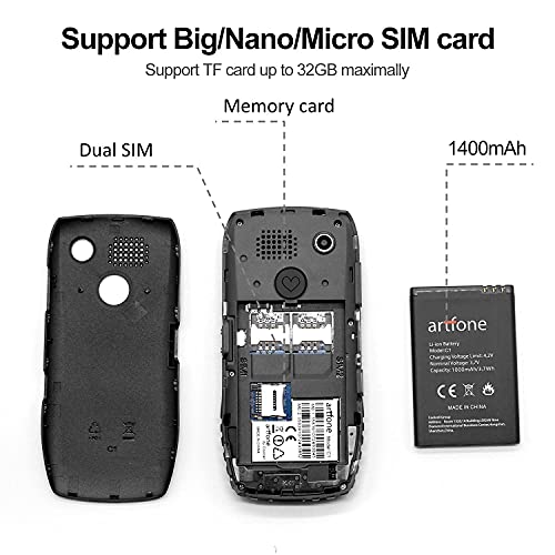 🏆 【Más funciones】Teléfono,SMS,Bluetooth,calendario,calculadora,alarmas, temporizador,reproductor de video,música,grabadora de voz,radio FM,marcación rápida, bloqueo de teclas,botón de emergencia,linterna, luz de fondo,1.77 pulgadas Pantalla, visualización de hora y fecha,tarjetas Dual Sim, Micro SD de hasta 32 GB y más.Si tiene alguna pregunta o problema antes de comprar o usar,contáctenos en: huangwangchengde@outlook.com.