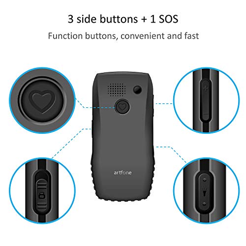 ☛【Botón SOS y botón de marcación rápida M1/M2】 el Artfone flip móvil antigolpes tiene un botón SOS en la parte posterior y un dial rápido en el número de contacto preferido. El botón de marcación rápida M1 / M2 le permite marcar rápida y fácilmente el número que usa con mayor frecuencia.Funciones con SOS,bluetooth, linterna, despertador, calculadora y radio FM, Tarjeta de soporte flash, bluetooth.(Sin función de cámara)