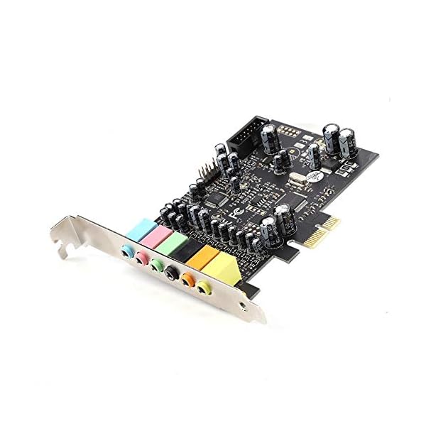 Tipo de productoTarjeta de audio PCI-ESolución chip(Cmedia) CM8828 + CM9882ATipo de puertoPCI-E X1Interfaz de audioLNE: Entrada de línea de audio, MC: entrada de micrófono, FRONTAL: SALIDA DELANTERA, REAR: Salida envolvente trasera, CSUB: Salida de medios / bajos, LADO: Salida de sonido envolvente lateralCanal de apoyo7.1 sonido envolvente HiFi estéreo de 8 canalesIncorporadoTarjeta de sonido separada incorporadaResolución de muestreo24 bits, frecuencia de muestreo de 192 kHzSistema de apoyopara Windows 2000 / XP / 2003 / Vista / Win 7 / Win 8 / Win 10 32 64bitCampos de aplicaciónEl principal punto de venta de este producto es el rendimiento de calidad de sonido, adecuado para la reproducción de video y juegos.Equipado con unidad ASO, no admite marca de capacitor y KXCaracterísticas del hardwareEntrada de micrófono de 1 * 3,5 mm (MIC)Entrada de línea de 1 * 3,5 mm (línea)Salida de línea de 4 * 3,5 mm (FRONTAL, TRASERO, C / SUB, LADO)Salida de audio de alta fidelidad (HF) (HDA) (Audio F) PS: se conecta al panel frontal del chasisAudio digitalFrecuencia de muestreo: 44.1-192kHz / 24 bitSNR: 100dbdistorsión armónica: -85db de reproducción / -90db de grabaciónCaracterística del softwaresoporte de sonido envolvente 7.1soporte ASO driveInterfaz de control de intercambio de software inteligente XearDúplex completo extendido (reproducción y grabación simultáneas)Patrón: Xear life, X ear clear, X ear canto, kappa ear predominateRequisitos del sistemaAl menos 1G Intel / AMD CPU1 * ranura PCI-EMemoria de acceso aleatorio de 1 GB1 * ranura de expansión digital no utilizada
