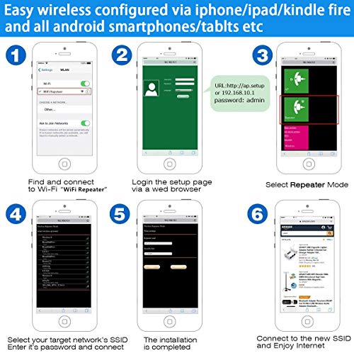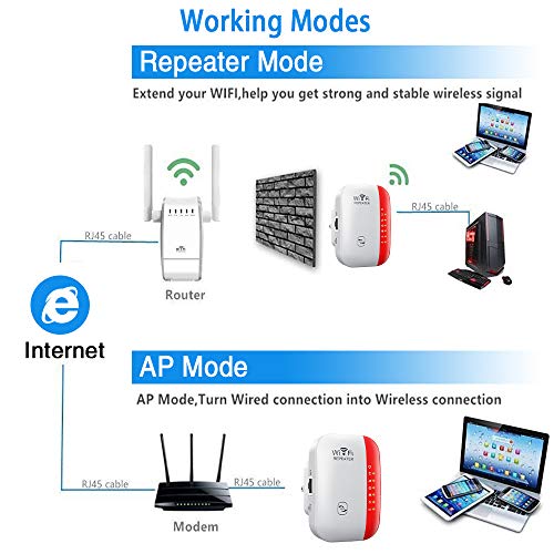 ❥ 【Dos Modos de Trabajo】: Relé y modo AP, se puede configurar el teléfono celular / tableta / computadora, solo se configura una vez, se pueden usar todos los dispositivos inalámbricos.