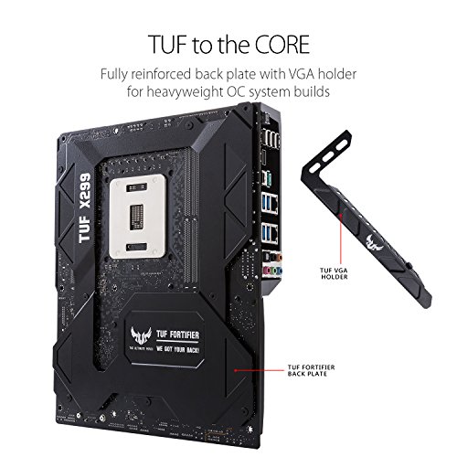TUF Fortifier, SafeSlot y soporte VGA: La placa trasera aumenta la resistencia estructural y las ranuras PCIe SafeSlot y el soporte VGA soportan el peso de las gráficas más pesadas.