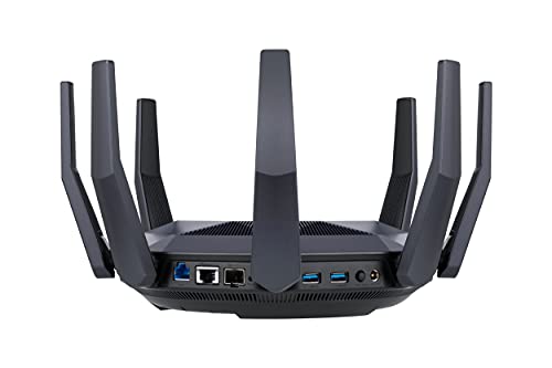 Este router de ASUS, modelo RT-AX89X Wi-Fi 6 AX6000, tiene doble banda, 12 streams, tecnologías MU-MIMO, OFDMA, AiProtection Pro con tecnología Trend Micro, QoS adaptable y puerto de 10G.
