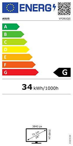 ASUS VP28UQG – Monitor de gaming de 28» 4K UHD(3840×2160, 1 ms, Adaptive-Sync, FreeSync, Antiparpadeo, Filtro de luz…