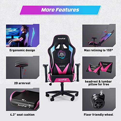 DISEÑO ERGONÓMICO: diseño ergonómico que se adapta a su cuerpo para una experiencia de juego perfecta, almohadas lumbares y de cabeza ajustables y flexibles que brindan mayor comodidad y apoyo, no más dolor de espalda o fatiga durante mucho tiempo jugando o trabajando