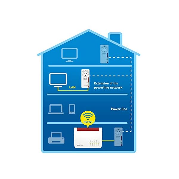 Toma de corriente integrada, 2 puerto LAN Gigabit para conectar cualquier Smart-TV, decodificador, Blue ray, NAS, equipo Hi-Fi o consola de videojuegos al router y a Internet mediante conexión LAN