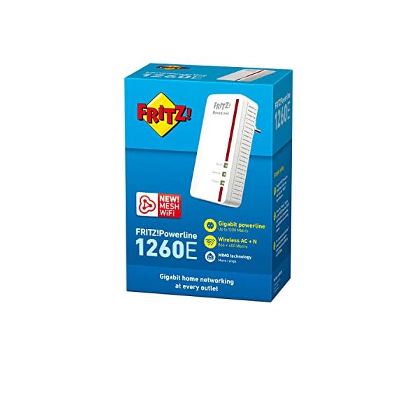 El fritz powerline 1260e transforma cada toma de corriente en un puerto de red gigabit rápido y seguro; con gigabit powerline de hasta 1. 200 mbps y la nueva tecnología mimo 2×2 puede obtener conexiones significativamente más robustas, mayor alcance y mayor rendimiento en la transmisión de datos; además, el dispositivo pone a disposición un punto de acceso inalámbrico ac + n con hasta 1266 mbps para la conexión a la red doméstica de smartphones, tablets y portátiles; con el adaptador fritz. Powerline 1260e incorpora una red mesh en su hogar y podrá disfrutar de las aplicaciones de banda ancha, con las más altas exigencias, en todos los rincones de la casa.