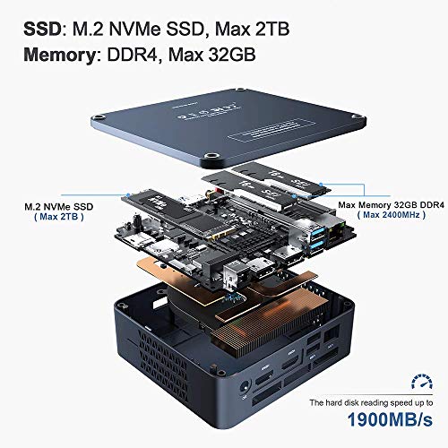 【Opciones de expansión de almacenamiento】 La mini computadora Beelink SEi está equipada con 16GB SO-DIMM DDR4 2400MHz Memory (se puede actualizar a 32GB), 512GB M.2 NVME SSD, admite hasta 1TB de disco duro SATA de 2.5 pulgadas y hasta 512GB de TF tarjeta. La multitarea se puede realizar sin problemas