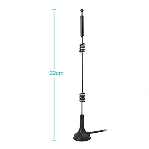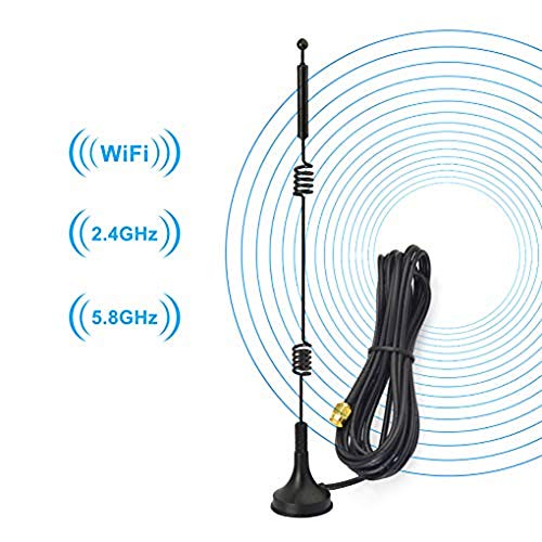 WiFi de Doble Banda: 2.4 GHz (2400 – 2485 MHz), 5 GHz / 5.8 GHz (5150 – 5850 MHz); Ganancia: 9dBi; Dirección: Omn-idireccional; Conector de Antena: Conector Macho SMA; Longitud del Cable: 3 Metros / 9.84 Pies; Paquete: 1 x Antena WiFi;