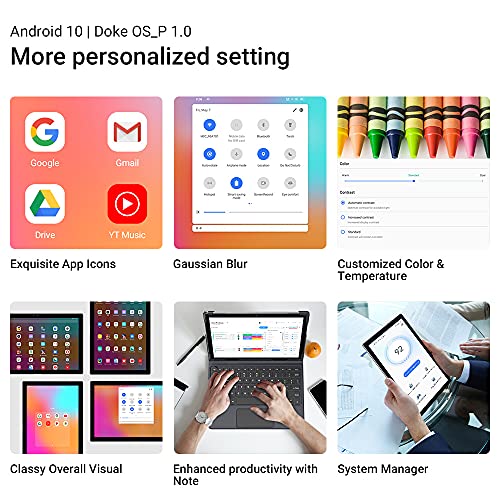 🔊【Pantalla de alta definición de 10,1 pulgadas + altavoces ultrafinos + + estéreo de 8,5 mm】Pantalla de alta definición de 10,1 pulgadas con una resolución de 1920 x 1200 y una relación de aspecto de 16:10. La pantalla puede lograr un toque preciso y proporcionar colores de imagen reales y vívidos e imágenes de alta calidad. El grosor es de solo 8,5 mm, lo que es muy fácil de sujetar, y el cuerpo es más delgado y resistente.Los altavoces duales te brindan una experiencia cinematográfica en casa
