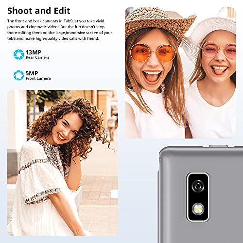 📷【Excelente cámara trasera de 13MP + cámara frontal de 5MP】La Tab 9 tiene cámaras duales ultra claras, cámara trasera de 13MP, que puede brindarle una experiencia de captura de colores más clara y vívida y capturar todos los detalles de la vida. También está equipado con una cámara frontal de 5MP, que se puede combinar perfectamente con el modo de belleza selfie, ¡convirtiéndote en el centro de la foto! Gracias a la cámara frontal, la velocidad de desbloqueo facial se mejora enormemente