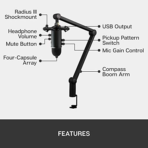 Diseñado para Yeti, el soporte de brazo de micrófono de calidad Compass cuenta con un funcionamiento suave y silencioso y un aspecto sofisticado en la cámara, con muelles internos y gestión de cables integrado para un uso sin problemas.